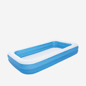 Артикул № 734820 Прямоугольный семейный надувной бассейн для взрослых детей от 3 лет. Изготовлен из высококачественного винила, устойчивый, надежный и безопасный. Имеет мягкие стенки с широкими бортиками и жесткое дно из ПВХ-пленки. Бассейн легко надувается и устанавливается на любой ровной поверхности. Для слива воды после использования бассейна предусмотрен специальный сливной клапан. Клапан можно подключить к садовому шлангу.
