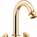 Назначение: для умывальника • Конструкция: двухрычажный • Монтаж: горизонтальный • Материал: латунь, покрытие - золото • Подводка: гибкая • Монтажные отверстия: 1 отверстие • Форма излива: традиционная • Душевая лейка в комплекте: нет • Аэратор: есть • Донный клапан в комплекте: есть