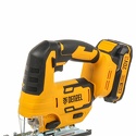рукоятка-скоба • питание: аккумуляторный (20 В) • аккумулятор в комплекте • глубина пропила: 80 мм (дерево) • 5 мм (сталь) • 0–3000 ходов/мин