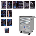 Комплектация• Головки торцевые стандартные шестигранные 1/2": 8, 9, 10, 11, 12, 13, 14, 15, 16, 17, 18, 19, 20, 21, 22, 23, 24, 25, 26, 27, 28, 29, 30, 32 мм;• Головка свечная шестигранная 1/2", 21 мм, L = 70 мм;• Головка свечная шестигранная 1/2", 16 мм, L = 70 мм;• Кардан 1/2;• Удлинитель 1/2", 75 мм;• Удлинитель 1/2", 125 мм;• Удлинитель 1/2", 250 мм;• Трещотка 1/2", 250 мм, 32 зубца, флажковая, фиксатор;• Вороток 1/2", 380 мм, с шарниром;• Вороток 1/2", 300 мм, скользящий.• Головки торцевые ударные глубокие шестигранные 1/2": 10, 11, 12, 13, 14, 17, 19, 21, 22, 24;• Головки торцевые TORX Е-стандарт 1/2", L = 37 мм: E10, E12, E14, E16, E18, E20;• Головки торцевые TORX Е-стандарт 1/4", L = 24 мм: E4, E5, E6, E7, E8;• Головки торцевые стандартные шестигранные 1/4": 4, 4.5, 5, 5.5, 6, 7, 8, 9, 10, 11, 12, 13;• Отвертка вороток 1/4", 310 мм, двухкомпонентная ручка;• Трещотка 1/4", 140 мм, 72 зубца, дисковый механизм;• Вороток 1/4", 125 мм, с шарниром;• Вороток 1/4", 115 мм, скользящий;• Удлинитель 1/4", 50 мм;• Удлинитель 1/4", 100 мм;• Кардан 1/4".• Ключи комбинированные, Размеры: 8, 10, 11, 12, 13, 14, 15, 17, 18, 19, 21, 22 24, 27, 30, 32• Ключи накидные: Размеры: 6x7, 8x9, 10x11, 12x13, 14x15, 16x17, 18x19, 20x22, 21x23, 24x27, 30x32• Отвертки крестовые Phillips: Размеры: NO.1x80, NO.2x38, NO.2x100, NO.3x150• Отвертки шлицевые Slotted: Размеры: 3x75, 4x100, 5.5x125, 6.5x38, 6.5x150, 8x175• Насадки (биты) торцевые 1/2", TORX, L=80 мм KING TONY (4033)Размеры: T20, T25, T27, T30, T40, T45, T50, T55, T60• Насадки (биты) торцевые 1/2", HEX, L=80 мм: Размеры: 4, 5, 6, 7, 8, 10, 12, 14, 17• Шестигранники Г-образные, с шаровым окончанием: Размеры: 1.5, 2, 2.5, 3, 4, 5, 6, 8, 10• Ключи разрезные: Размеры: 10x11, 12x14, 14x17• Съемник масляных фильтров, 60-140 мм, цепной.• Ключи L-образные HEX: Размеры: 2, 2.5, 3, 4, 5, 6, 8, 10• Ключи L-образные TORX: Размеры: T10, T15, T20, T25, T30, T40, T45, T50• Плоскогубцы комбинированные серии 6111-08 - 200 мм;• Бокорезы серии 6211-06 - 160 мм;• Плоскогубцы тонконосые серии 6311-06 - 160 мм;• Съемник для стопорных колец, прямые, сжатие: 180 мм;• Съемник для стопорных колец, загнутые, сжатие: 180 мм;• Съемник для стопорных колец, прямые, разжатие: 180 мм;• Съемник для стопорных колец, загнутые, разжатие: 180 мм.• Ключ разводной Chrome: 300 мм;• Захват переставной: 250 мм;• Молоток квадратный: 800 гр.• Выколотки: Размеры: 2x30, 3x40, 4x50, 5x50, 6x50, 8x50• Тележка для инструмента.