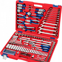 Набор: 174 шт • Головки: 6-ти гранные головки, головки E-профиль, свечные • Ключей-трещоток: 3 шт • Хранение: пластиковый кейс