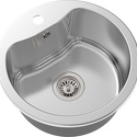 Форма чаши: круглая • Материал: нерж. сталь • Количество чаш: 1 основная • Установка: врезная • Глубина чаши: 20 см • Измельчитель пищевых отходов: нет • Размеры: 43.50x43.50 • Мотажное отверстие: 43.50x43.50 • Диаметр сливного отверстия: 3 "