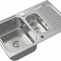 Форма чаши: прямоугольная • Материал: нерж. сталь • Количество чаш: 1 основная, 1 дополнительная • Установка: врезная • Крыло: есть • Глубина чаши: 19 см • Измельчитель пищевых отходов: нет • Размеры: 80x50 • Мотажное отверстие: 80x50 • Диаметр сливного отверстия: 3 "