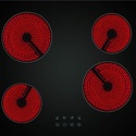 Поверхность: варочная панель • Тип поверхности: электрическая • Рабочая поверхность: стеклокерамика • Число конфорок: 4 • Установка: независимая • Электрические конфорки: керамические; всего - 4 (4 конфорки быстрого разогрева) • Конфигурация электрических конфорок: 2 x 180 мм 1800 2 x 140 мм 1200 • Защитное отключение: есть • Индикаторы остаточного тепла: есть • Тип управления: электронное • Переключатели: сенсорные