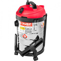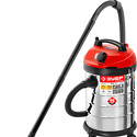 Тип: обычный • Уборка: сухая • Потребляемая мощность: 1400 Вт • Объём пылесборника: 30 л • Типы пылесборника: мешок, патронный фильтр, сменные бумажные пылесборники • Фильтрация воздуха: фильтр тонкой очистки • Трубка: составная • Шнур питания: 4.5 м • Размеры (ШxВxГ): 355x610x360 • Вес: 6.5 кг • Материал корпуса: нерж.сталь • Цвет корпуса: красный • Насадки: универсальная, щелевая